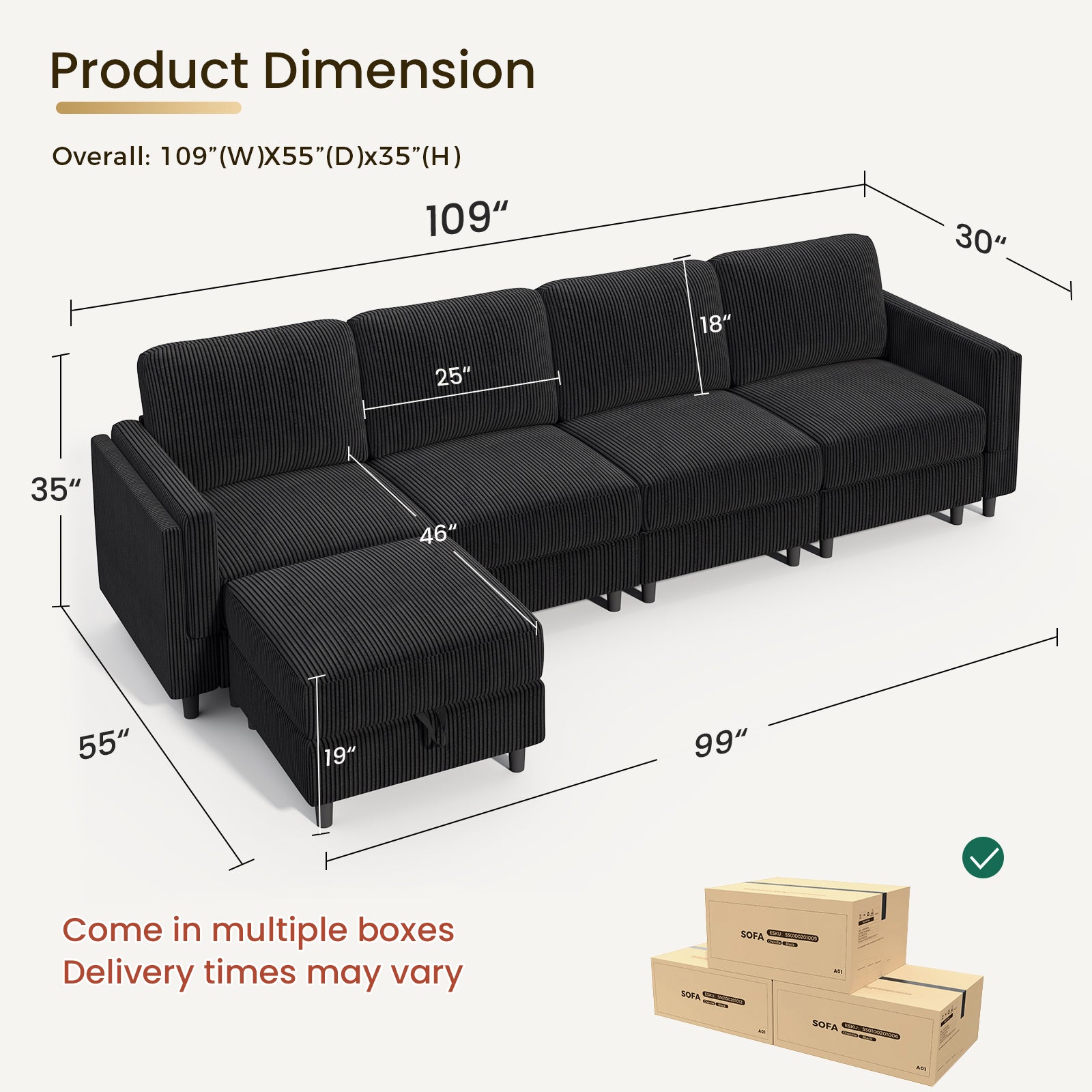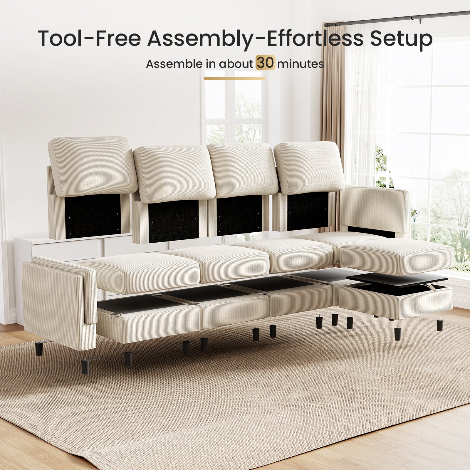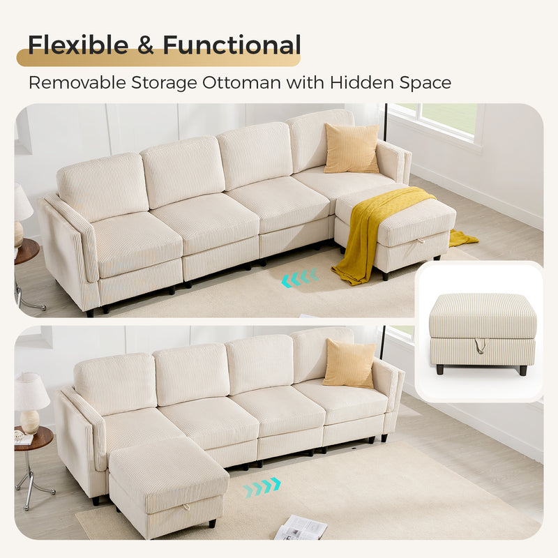 Modular Sectional Sofa Bed with Storage Ottoman