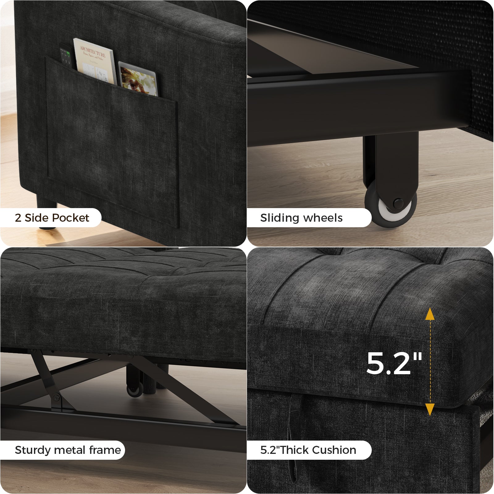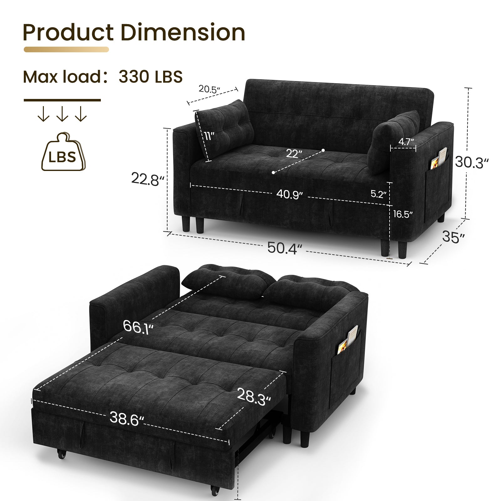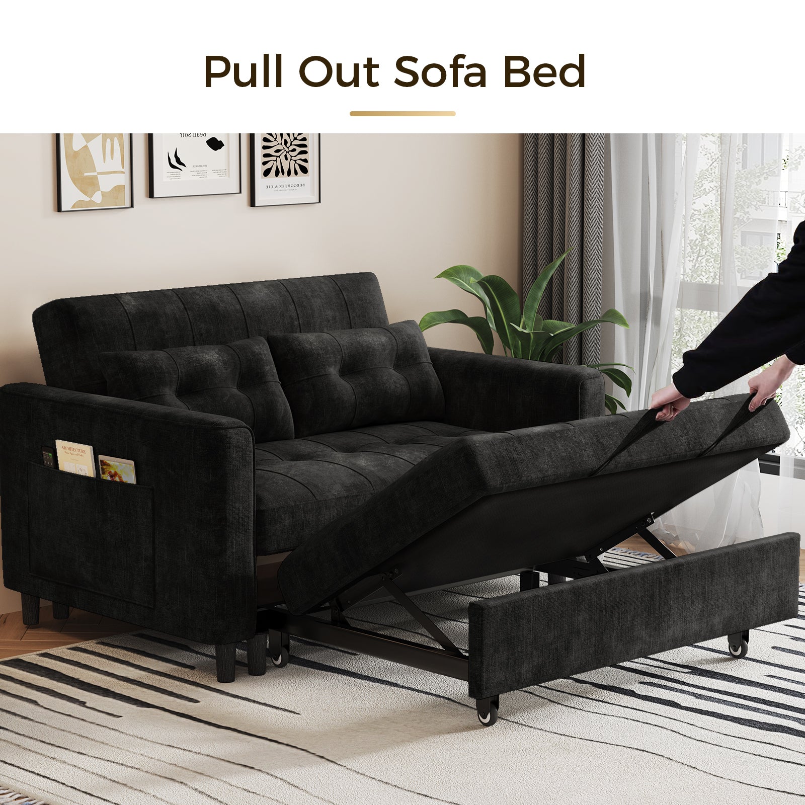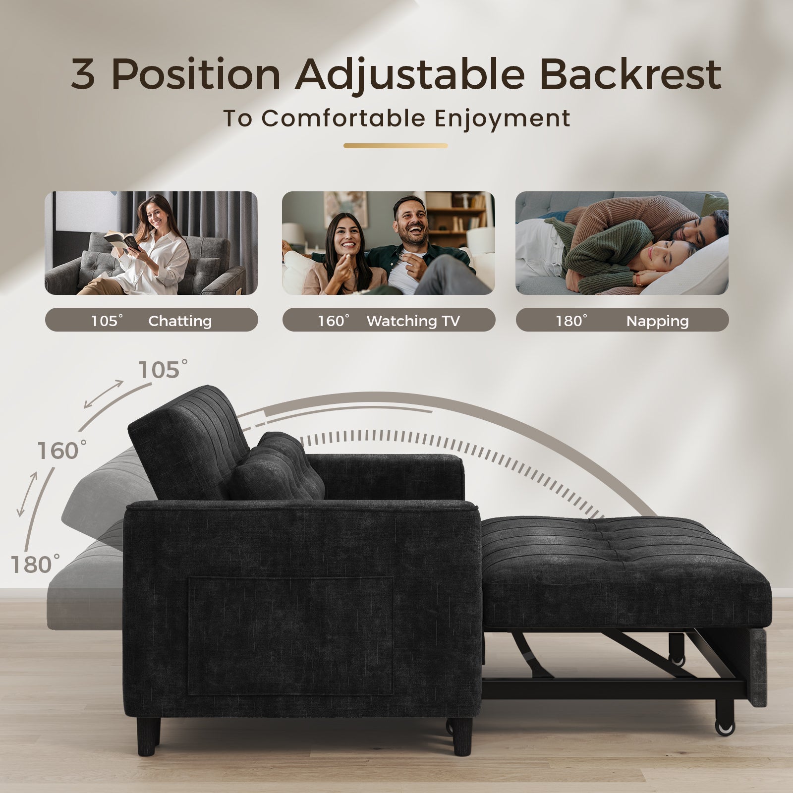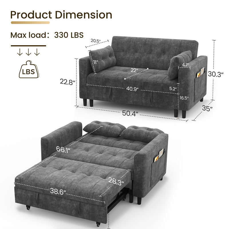 3 Position Adjustable Backrest,simply pull out the loveseat sofa to convert it into a sleeper sofa bed with smooth sliding wheels, perfect for relaxing in an apartment, living room, studio, or home office.