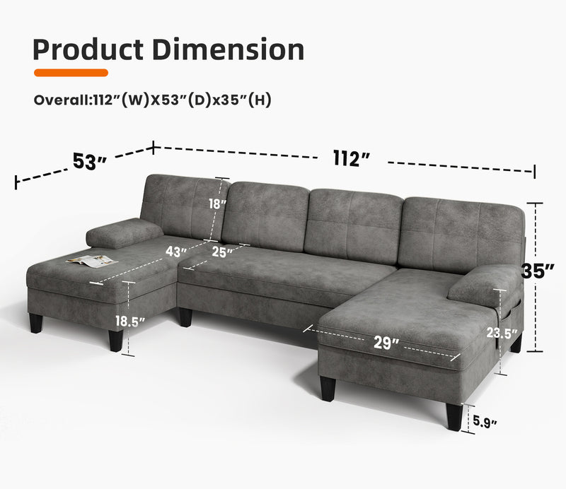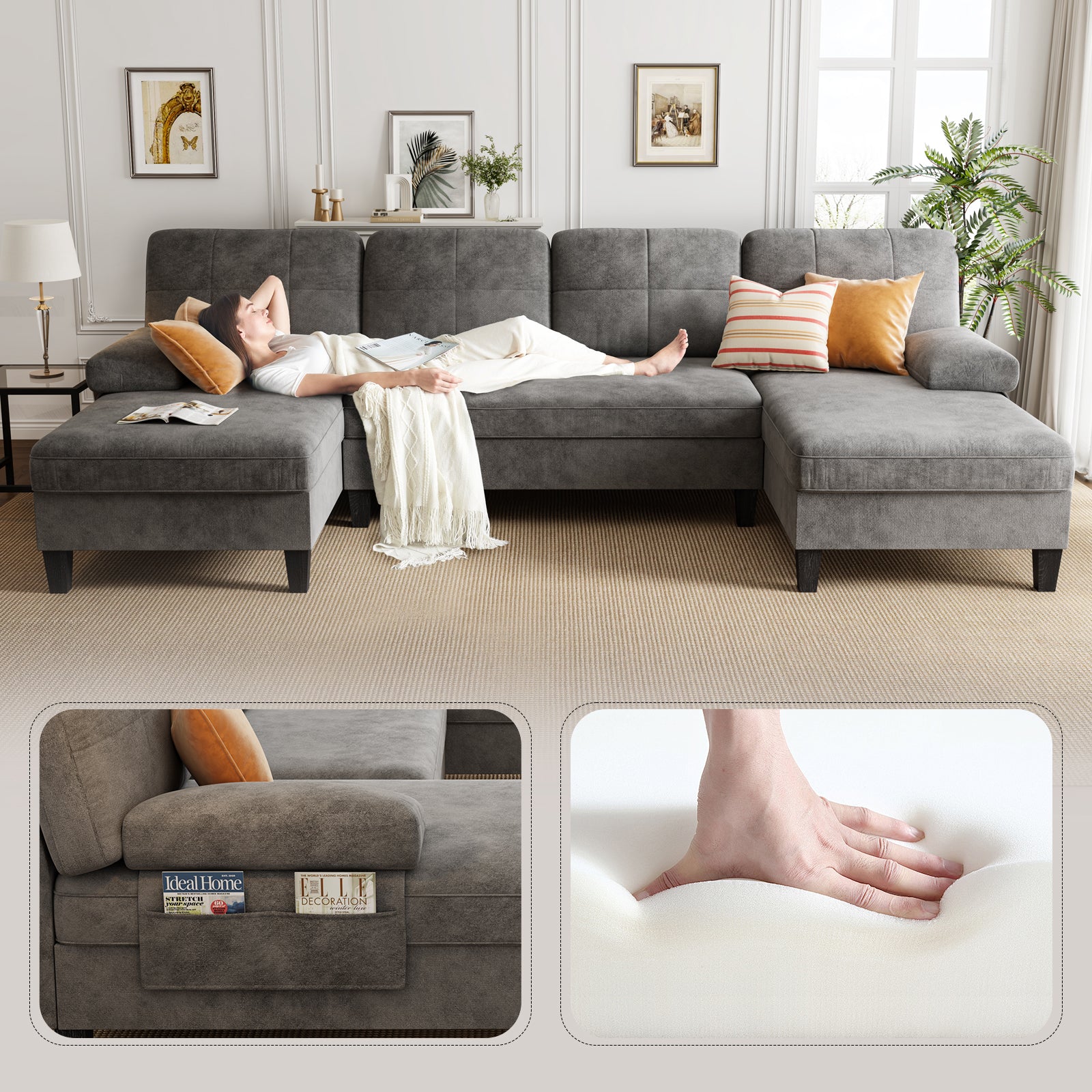 Chenille Fabric Modular U-Shaped Sectional Sofa Set