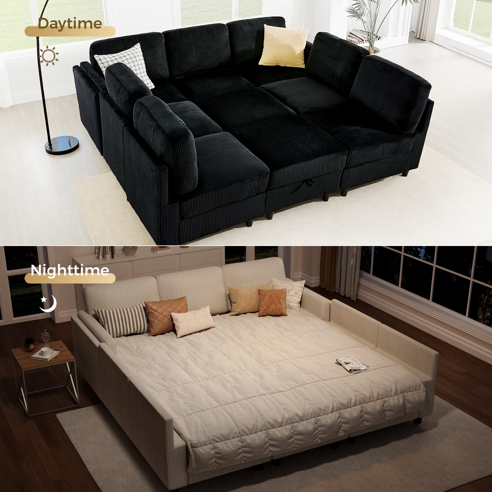 Modern Reversible Design Sleeper Sofa Bed