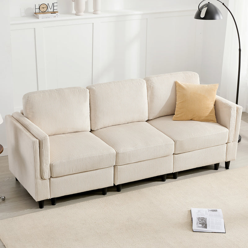White Plush Fabric 3 Piece Modern Sectional Sofa